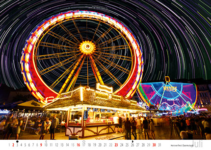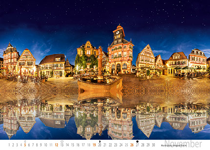Marktplatz Heppenheim Für mich einer der schönsten Marktplätze des Oden- walds, dargestellt als 360° Panoramaaufnahme. Diese Fotografie strahlt durch die warme nächt- liche Farbgebung, ein gefühltes vorweihnachtliches Flair aus und schaffte es daher als Sommerbild auf das Novemberblatt. Die Marienstatue der Brunnen- säule befindet sich gerade zur geplanten Anferti- gung einer Kopie in einem Steinmetzbetrieb. Dort durfte ich diese mit freundlicher Unterstützung zum anschließenden Einmontieren fotografieren.