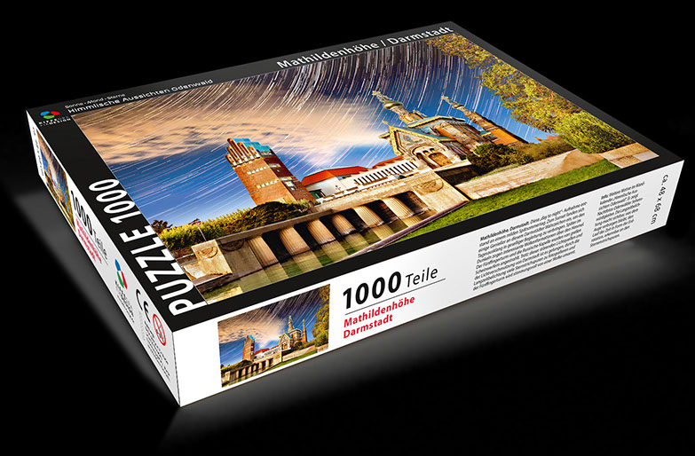 Diese „day to night“- Aufnahme entntand an einem milden Spätsommertag. Zum Sunset fanden sich einige Genieser an diesem Darmstädter Wahrzeichen ein. Später im Dunkeln zogen interessante Wolkenformationen über den Himmel. Der Fünffingerturm und die Russische Kapelle wurden von grellen Scheinwerfern angestrahlt. Trotz dieser störenden Lichtquellen und der Lichtverschmutzung der Stadt ist es gelungen viele Sternstrichspu-ren zu fotografieren. Das Foto besteht aus ca. 600 Einzelbildern und 6 Stunden Fotozeit.
